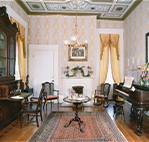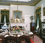 Each room has been faithfully restored to its original splendor. Some highlights include the dining room, with its exquisite collection of antique silver and china, the music room, contains a rare Prudent Mallard secretary, and an 1874 Rosewood grand piano. The library, a favorite room by many, including General Grant, boasts an expansive collection of books, including many rare first editions.